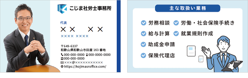 名刺デザインから封筒、チラシ・ポスター、パンフレットなど、士業向けの印刷・広告物のデザイン制作を承ります。
